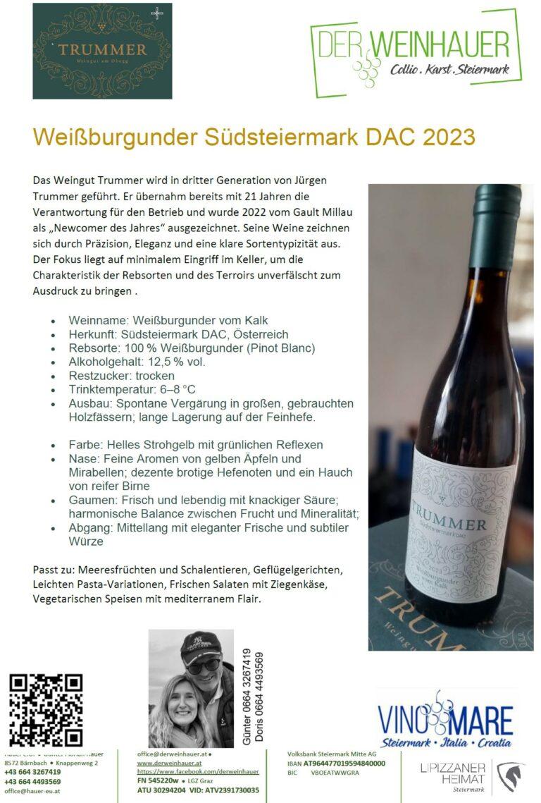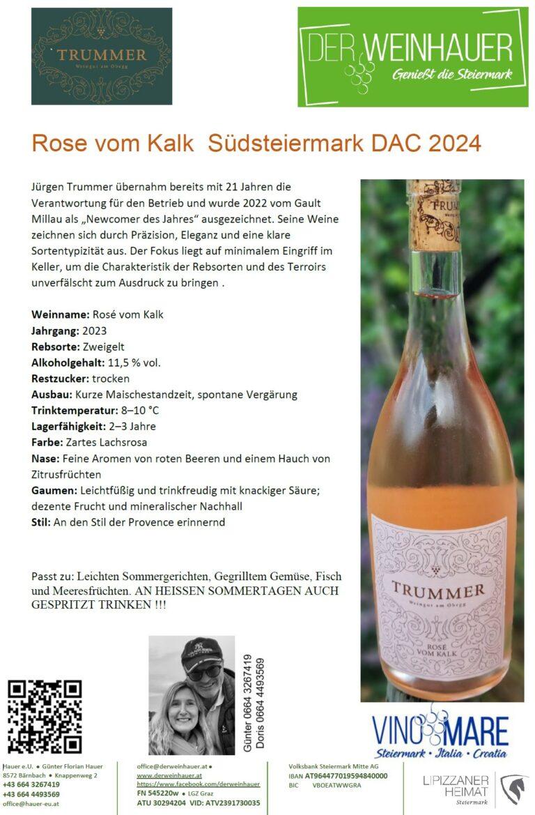 Das Weingut Trummer am Obegg wird von Jürgen Trummer geführt und bewirtschaftet rund 6 Hektar steile Weinberge in der Südsteiermark, die biologisch bewirtschaftet werden. Die Weine spiegeln die typische Region wider – sanfte Hügel, Buschenschank-Jause, gesellige Runden und weite Ausblicke über die Weinlandschaft. Eine Besonderheit der Weißweinbereitung ist die Reifung auf der Feinhefe, die den Weinen zusätzliche Struktur, Fülle und Langlebigkeit verleiht. In unserem Sortiment führen wir aktuell Rosé vom Kalk € 16,— ✅. sowie Weißburgunder vom Kalk DAC € 15,— ❤️.